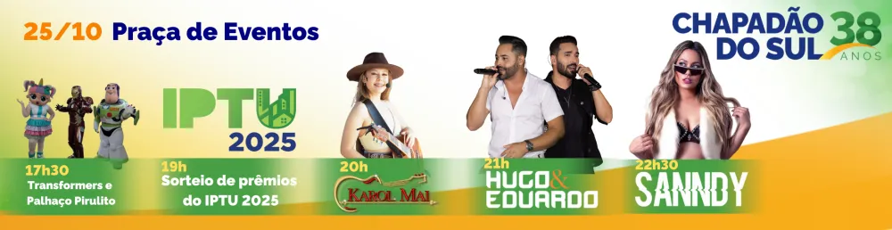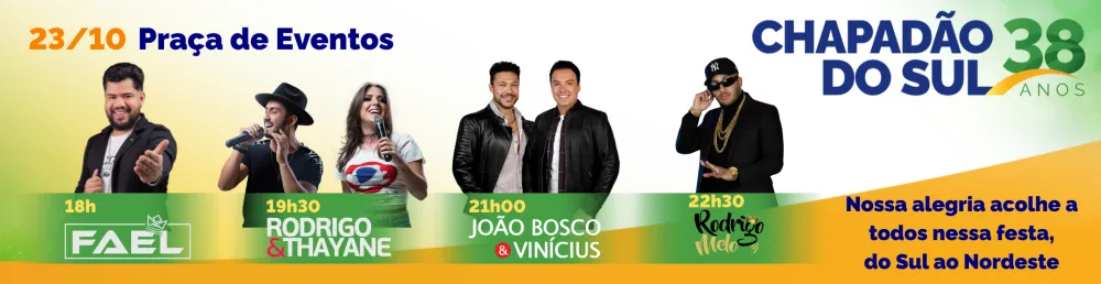 “Chapadão do Sul chega aos seus 38 anos com muito orgulho e motivos para comemorar! Quero convidar cada sul-chapadense para celebrar conosco essa grande festa preparada por toda a nossa equipe da Prefeitura. É um aniversário feito para a nossa população, que faz da nossa cidade um lugar cada vez melhor. ESSA FESTA É DE TODOS NÓS”.