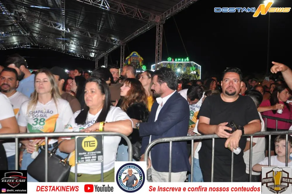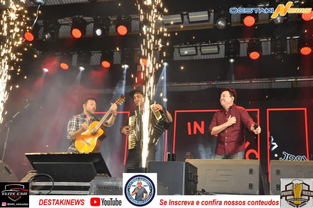 O site e jornal Destakinews esteve presente na primeira noite de festa, acompanhando de perto toda a emoção e alegria do público que lotou a praça de eventos em Chapadão do Sul para prestigiar o mega show de João Bosco & Vinícius. A dupla animou o público com sucessos que marcaram época e levantaram a platéia do início ao fim da apresentação.